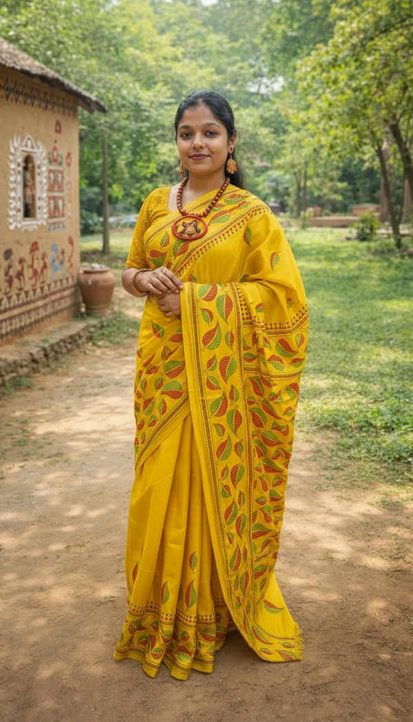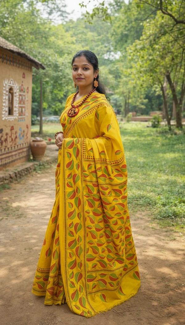 This exquisite fabric is woven from premium blended Bangalore silk, offering a smooth drape and refined sheen. Enhanced with handcrafted Kantha embroidery, the delicate running stitches create a rich texture and timeless elegance. Each piece reflects skilled artisanal craftsmanship, making it a statement of understated luxury.