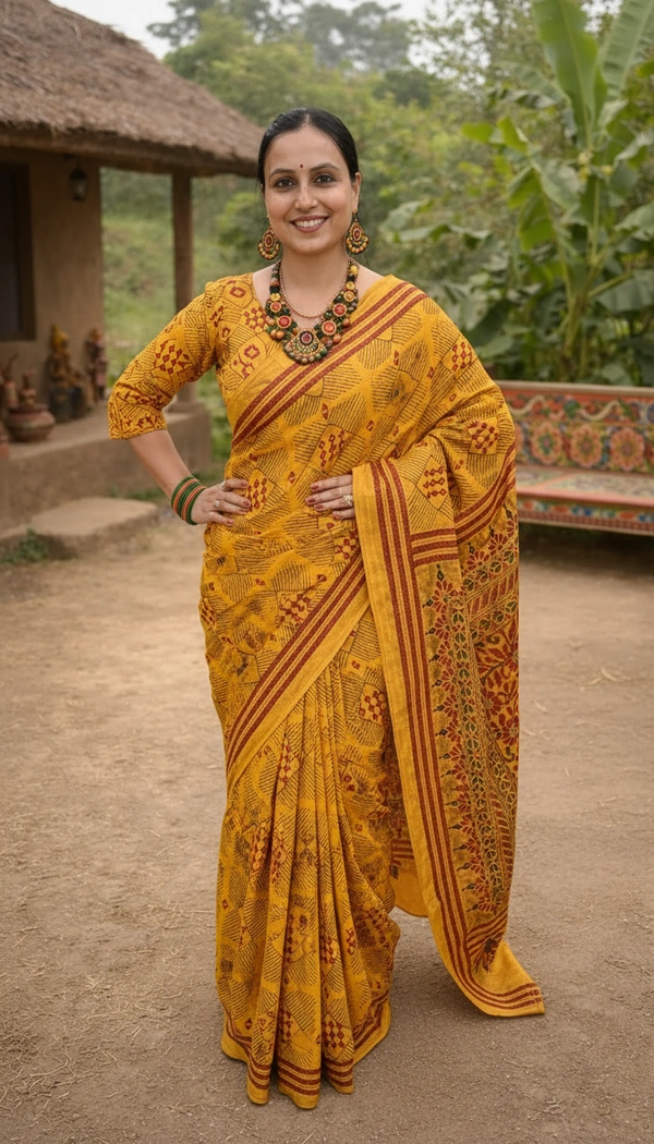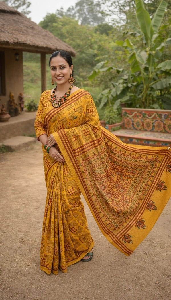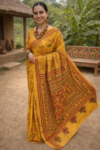 The rich silk fabric drapes effortlessly, making it perfect for long celebrations, weddings, festive occasions, and formal gatherings. Subtle detailing and refined borders add a touch of sophistication, while the vibrant yet graceful color palette enhances its regal charm.