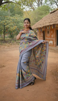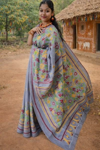 The rich silk fabric drapes effortlessly, making it perfect for long celebrations, weddings, festive occasions, and formal gatherings. Subtle detailing and refined borders add a touch of sophistication, while the vibrant yet graceful color palette enhances its regal charm.