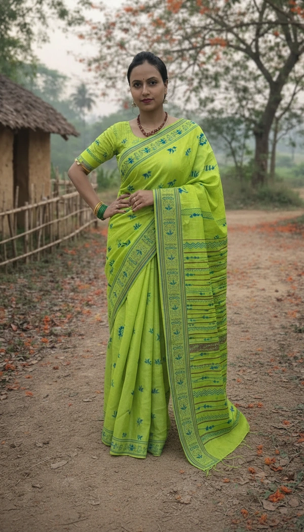 A pure cotton saree is a traditional Indian garment made entirely from natural cotton fibers. These sarees are loved for their lightweight, breathable, and comfortable qualities—making them ideal for hot and humid climates.