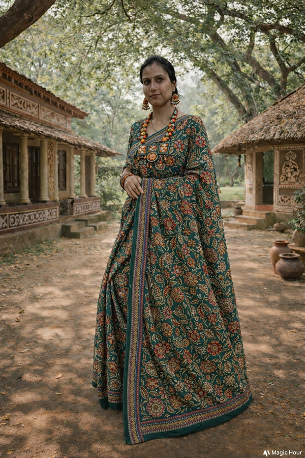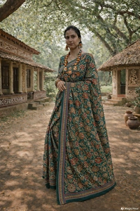 The rich silk fabric drapes effortlessly, making it perfect for long celebrations, weddings, festive occasions, and formal gatherings. Subtle detailing and refined borders add a touch of sophistication, while the vibrant yet graceful color palette enhances its regal charm.
