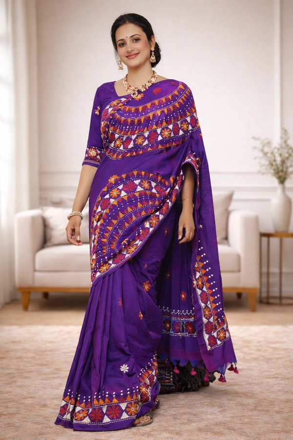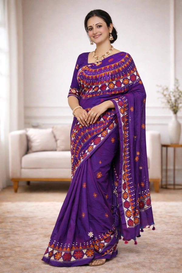 SKU1441 : Khadi Cotton Fabric With Traditional Lambani Work