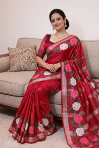 This linen handloom piece is a perfect blend of natural texture and refined craftsmanship, enhanced with intricate embroidery and appliqué work. The breathable, lightweight linen fabric offers effortless comfort, while the layered detailing adds depth and elegance. A sophisticated choice for those who appreciate subtle luxury and artisanal design.