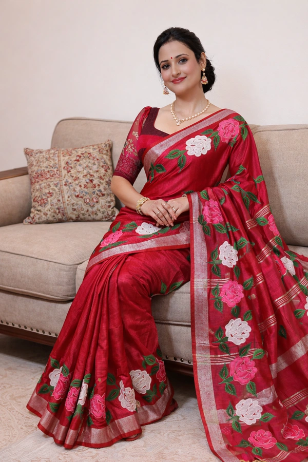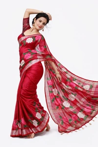SKU1458 : Linen Handloom with Embroidery Appliqué Work