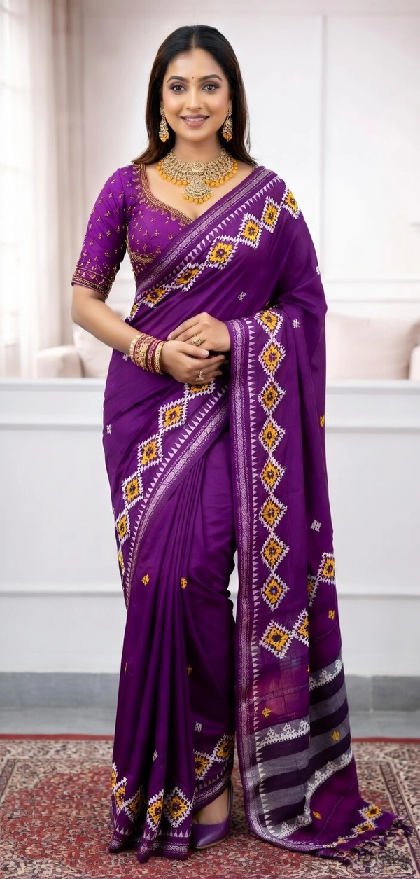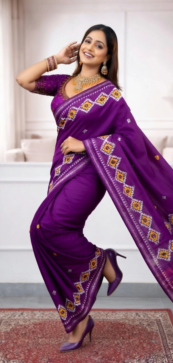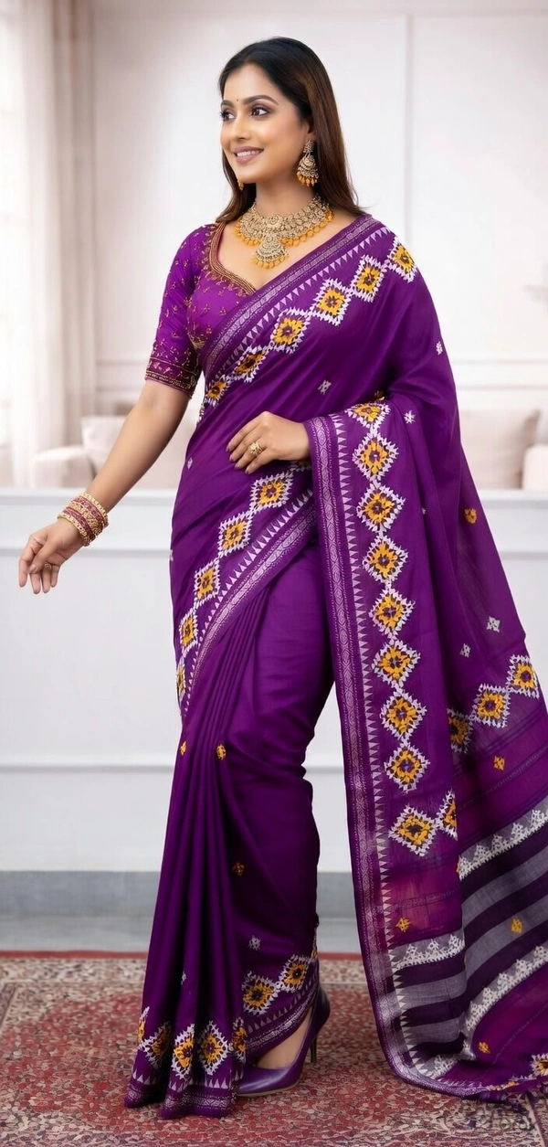 SKU1460 : Khadi Cotton Saree with Elegant Embroidery Work