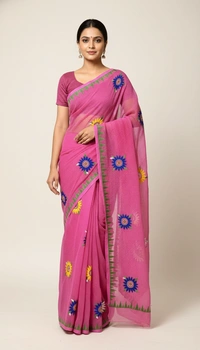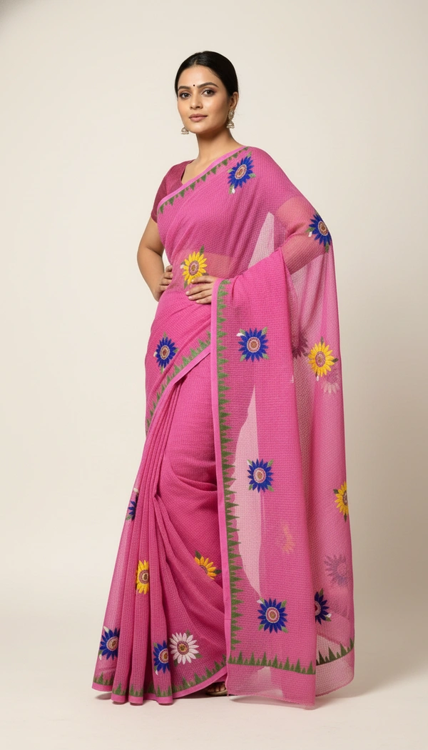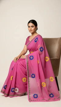 Carefully handcrafted, the hand stitch work highlights skilled artistry, giving the saree a unique and authentic appeal. Comfortable to wear and rich in heritage aesthetics, this saree is perfect for festive occasions, cultural events, and traditional gatherings.