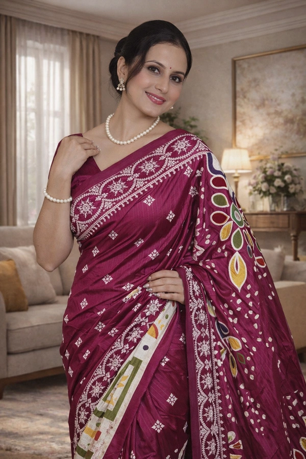 Lightweight and comfortable, this saree is perfect for festive occasions, cultural events, and statement ethnic styling.