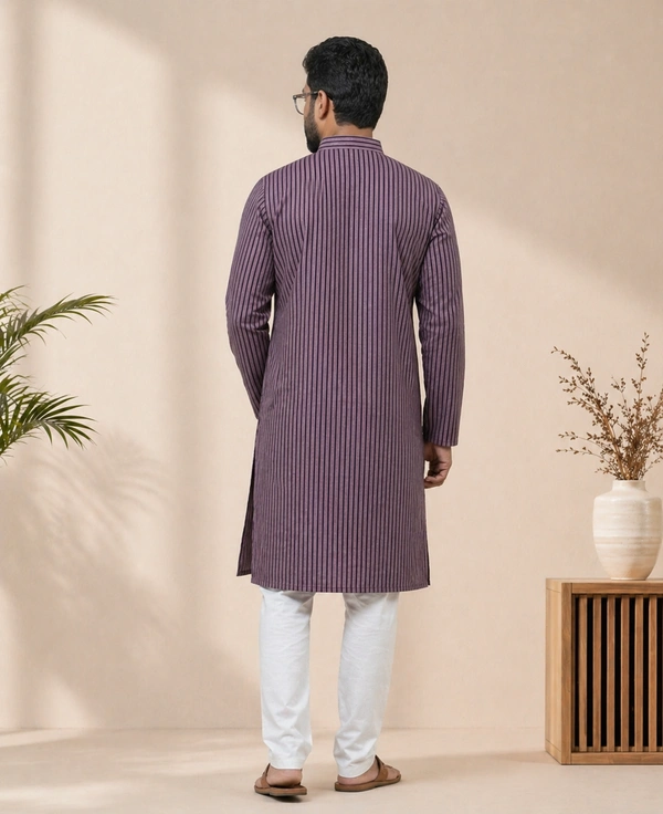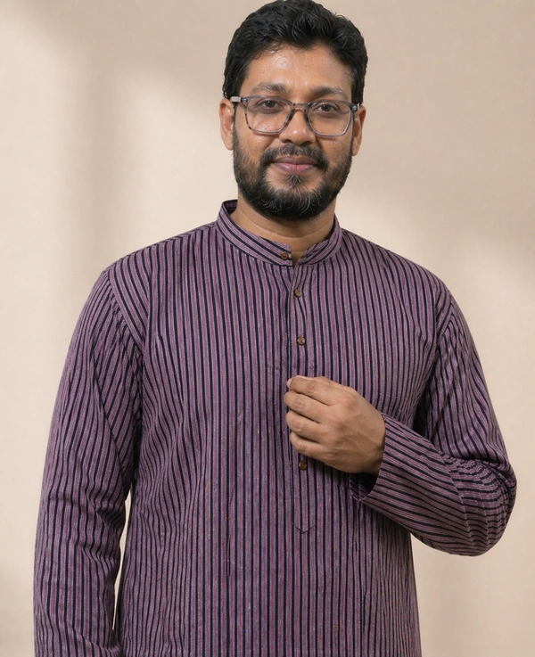 SKU1596 : Men’s Khadi Cotton Panjabi – Handwoven Striped Ethnic Wear | Festive & Casual Traditional Punjabi for Men