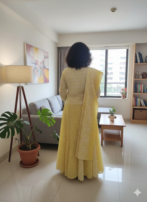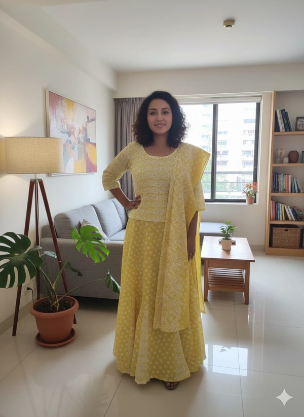 Experience effortless elegance with our Mulmul Printed Ready-to-Wear Lehenga Set, designed for modern women who love traditional style with comfort. Made from soft and breathable Mulmul fabric, this lehenga features beautiful all-over prints that add charm and sophistication to any festive or casual occasion.